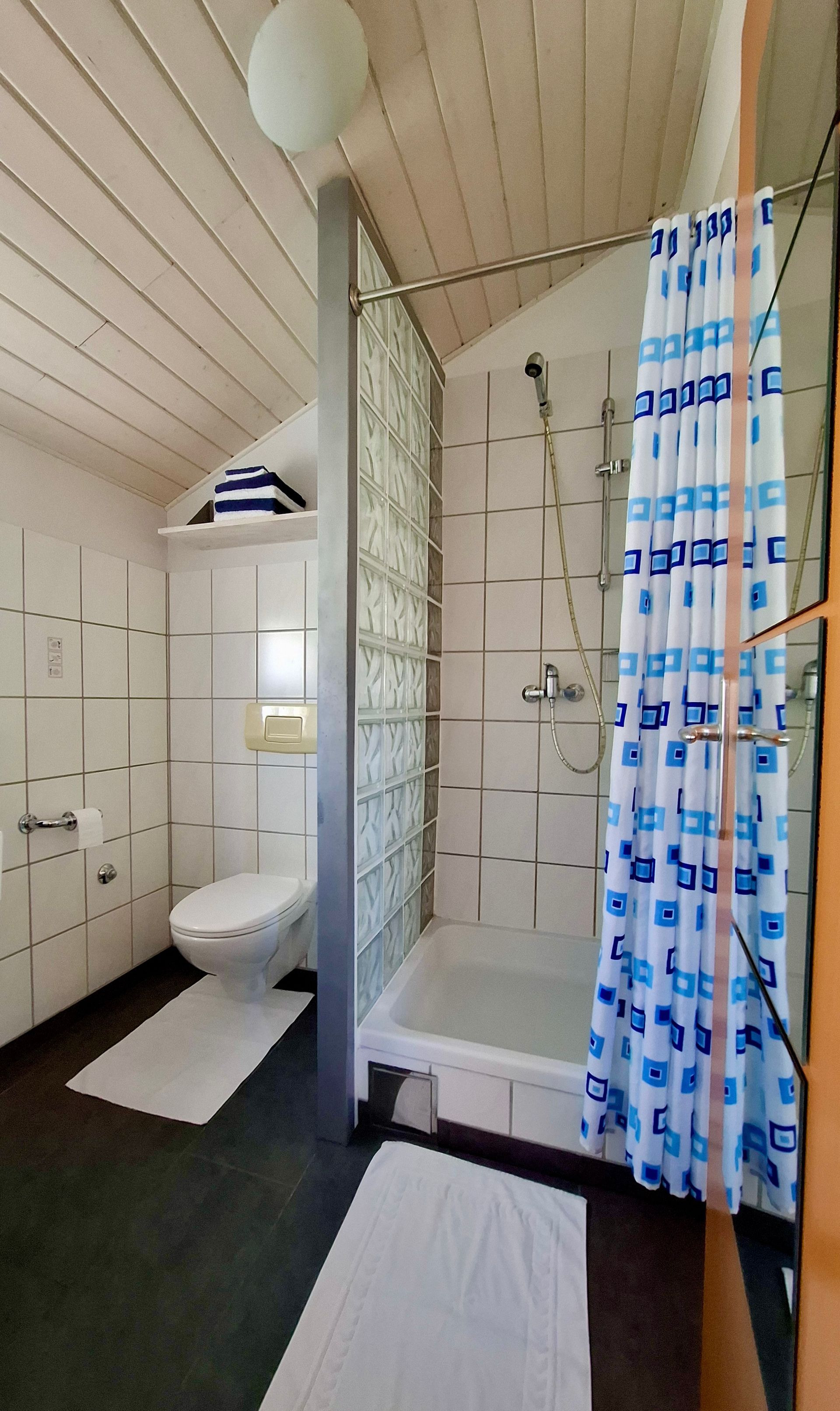 Das ist eine Studiowohnung mit Schlafzimmer (Doppelbett + Hilfsbett), Küche undBadezimmer. Ebenfalls mit Balkon Richtung Süden.